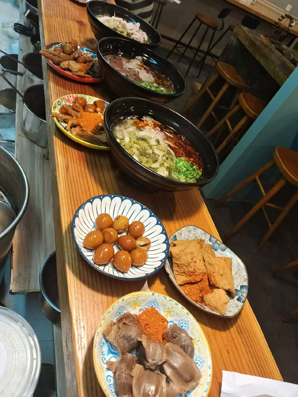 套餐:酸菜粉、水煮肉片粉、卤味拼盘、卤鸭胗等