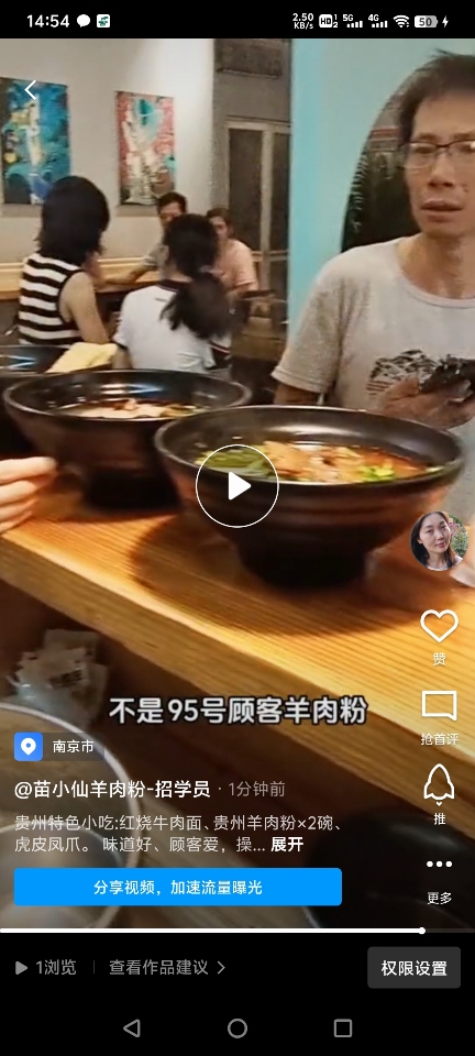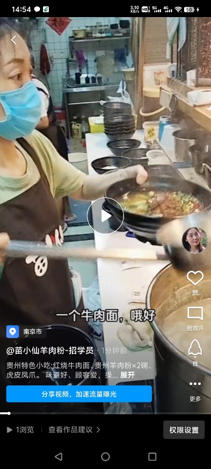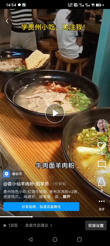 贵州特色小吃:红烧牛肉面、贵州羊肉粉×2碗、虎皮凤爪。