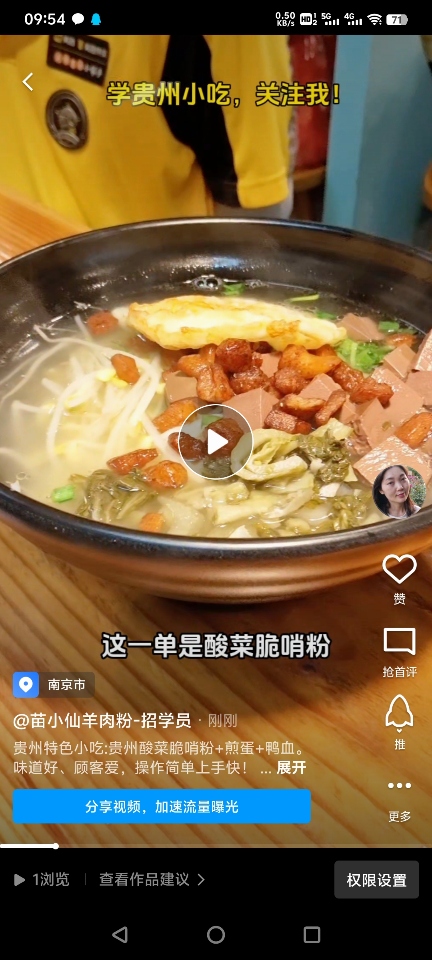 贵州特色小吃:贵州酸菜脆哨粉+鸭血+煎蛋