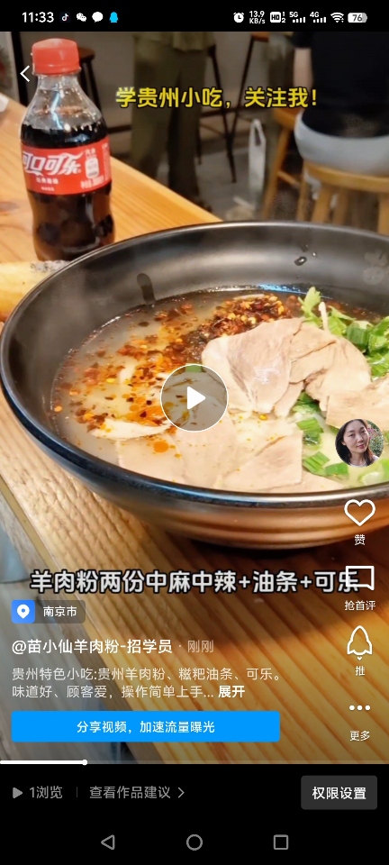 贵州特色小吃:贵州羊肉粉、糍粑油条、可乐。 味道好、顾客爱,操作简单上手快!学贵州特色小吃技术,关注我!